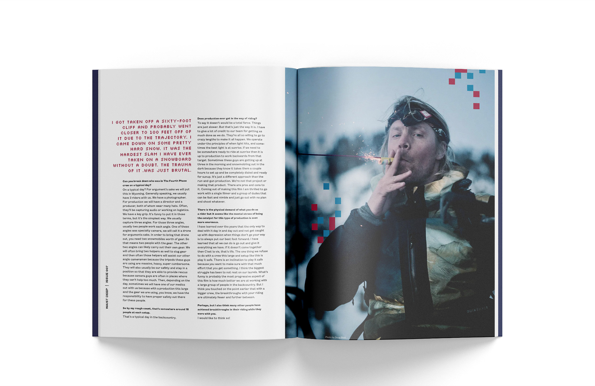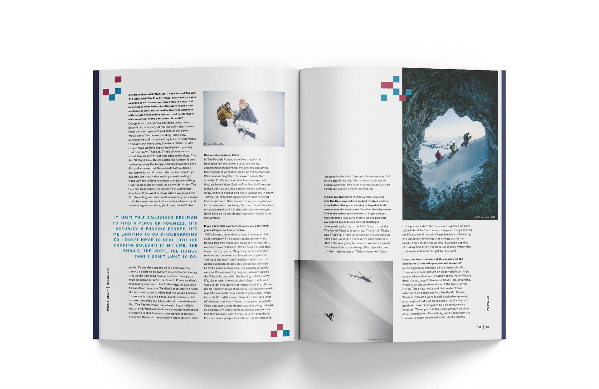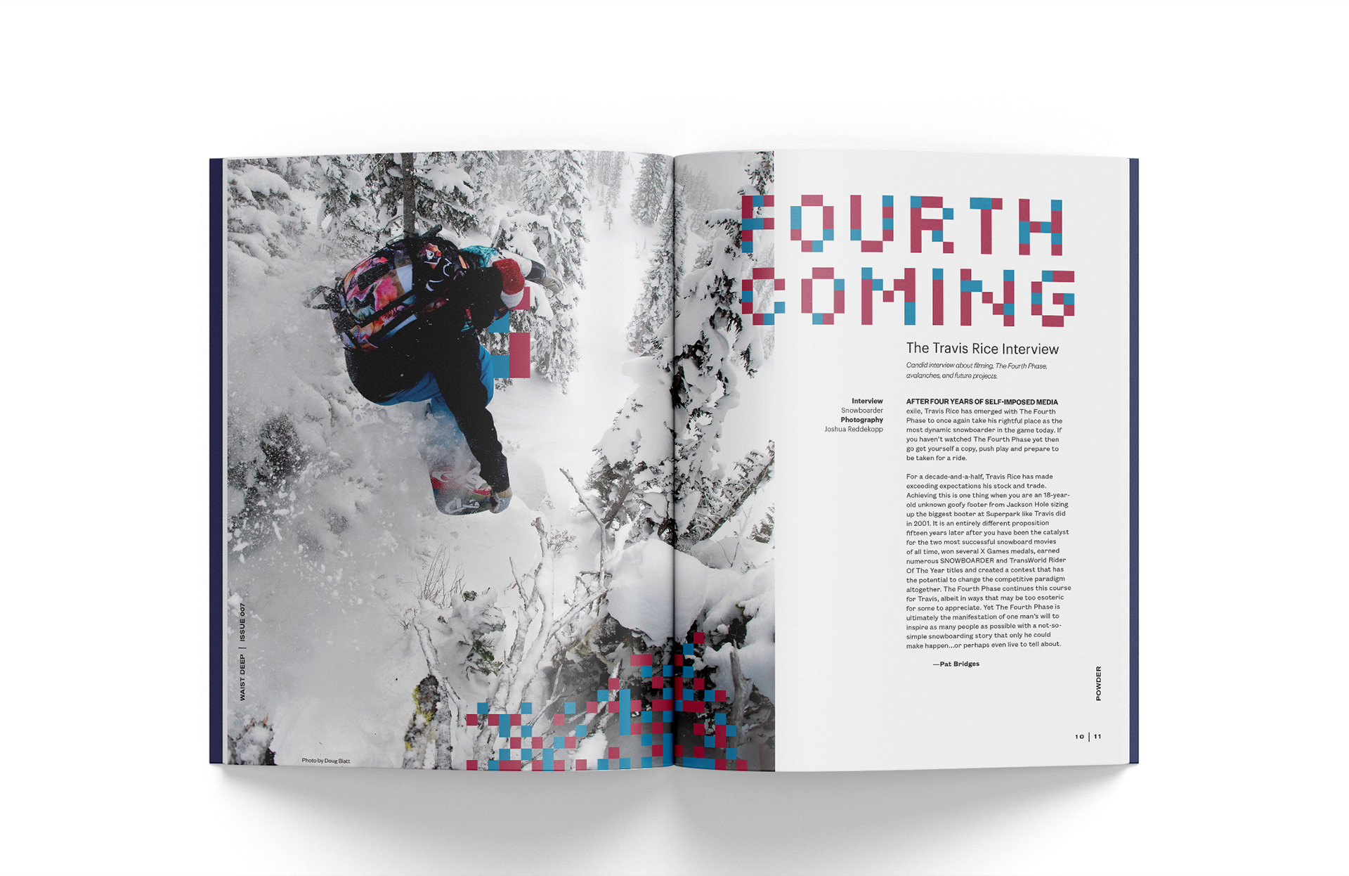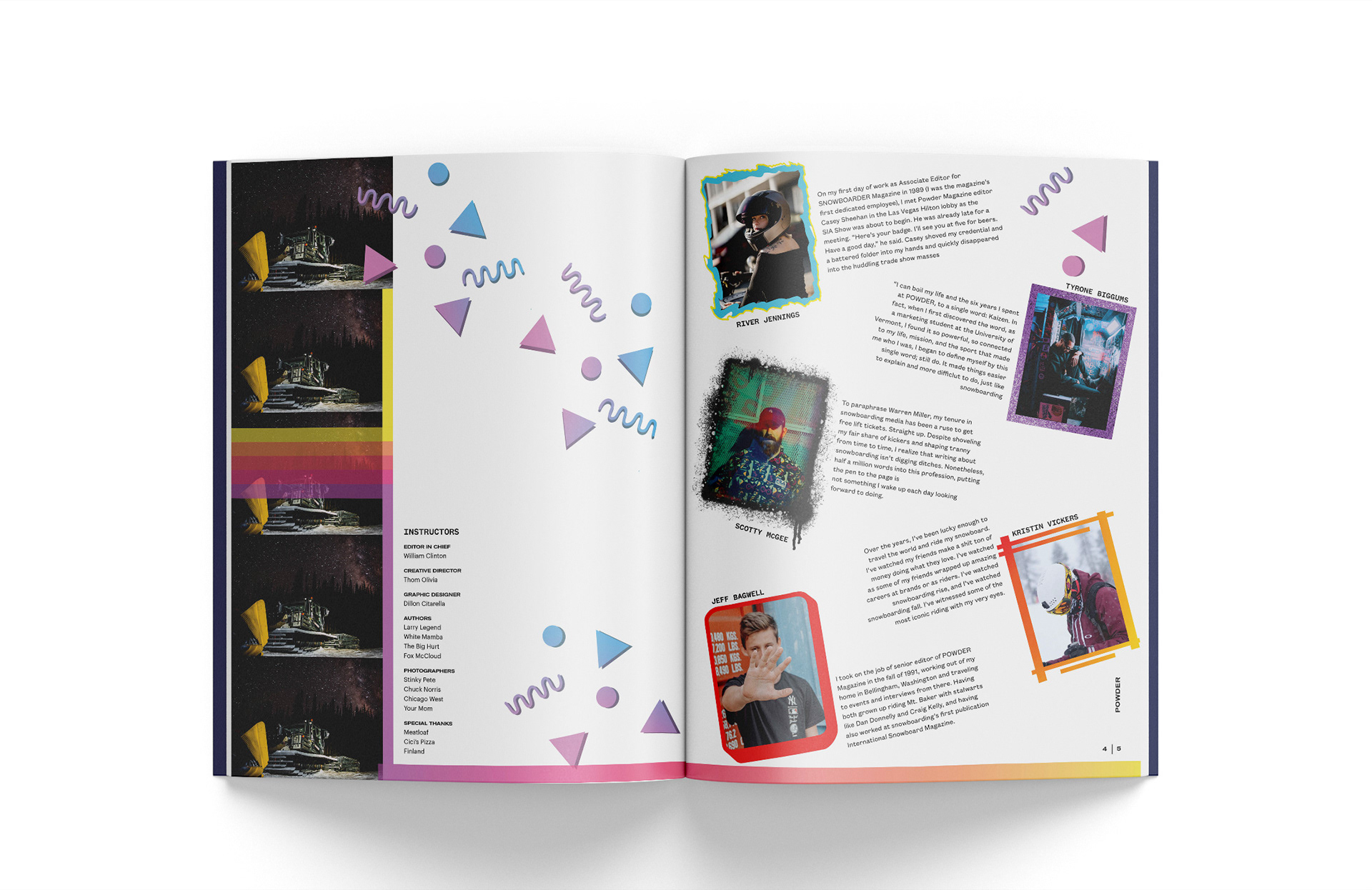 Early 90's inspired Magazine design created to highlight snowboarding and winter sports, both riders and locations. Complete with interviews, featured articles, and an alternate issue cover.