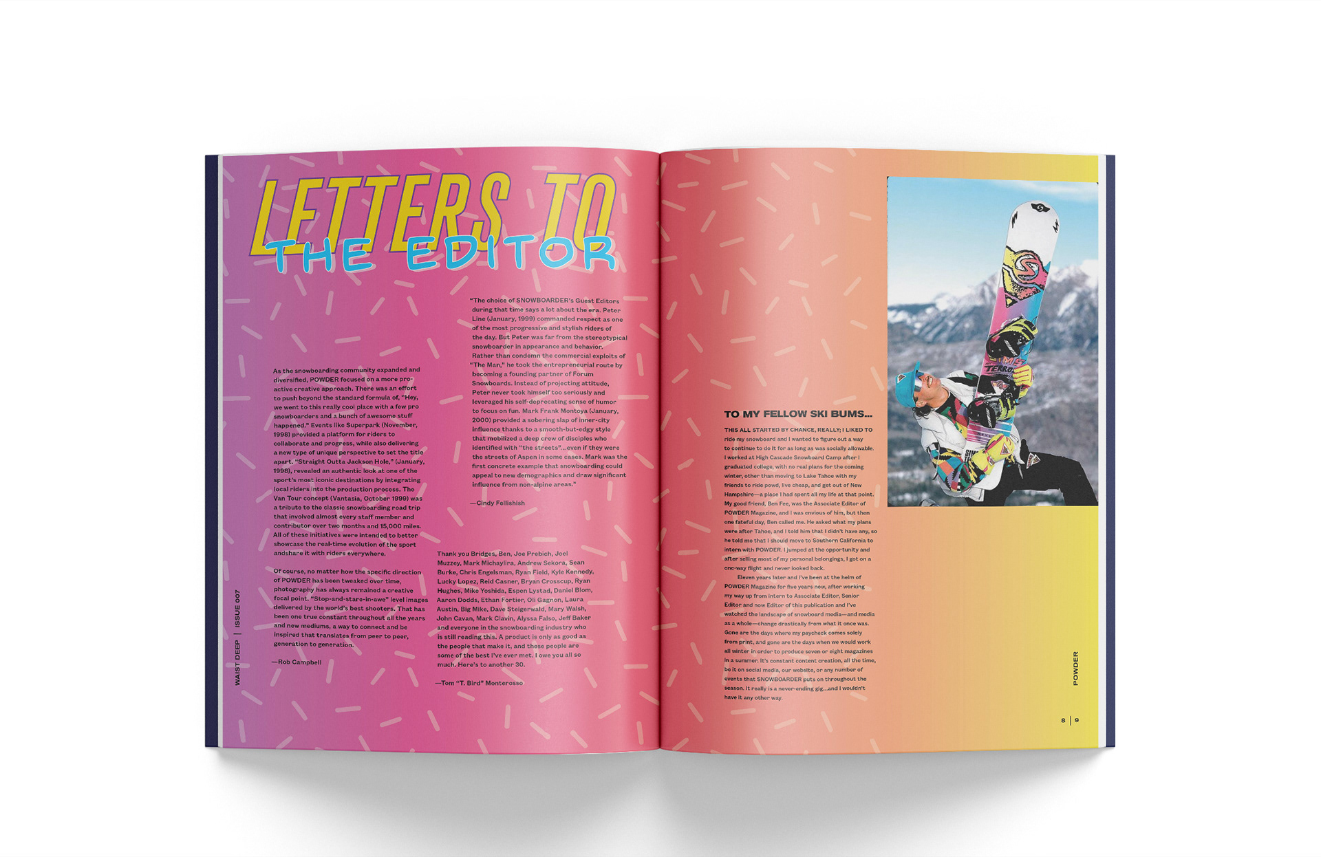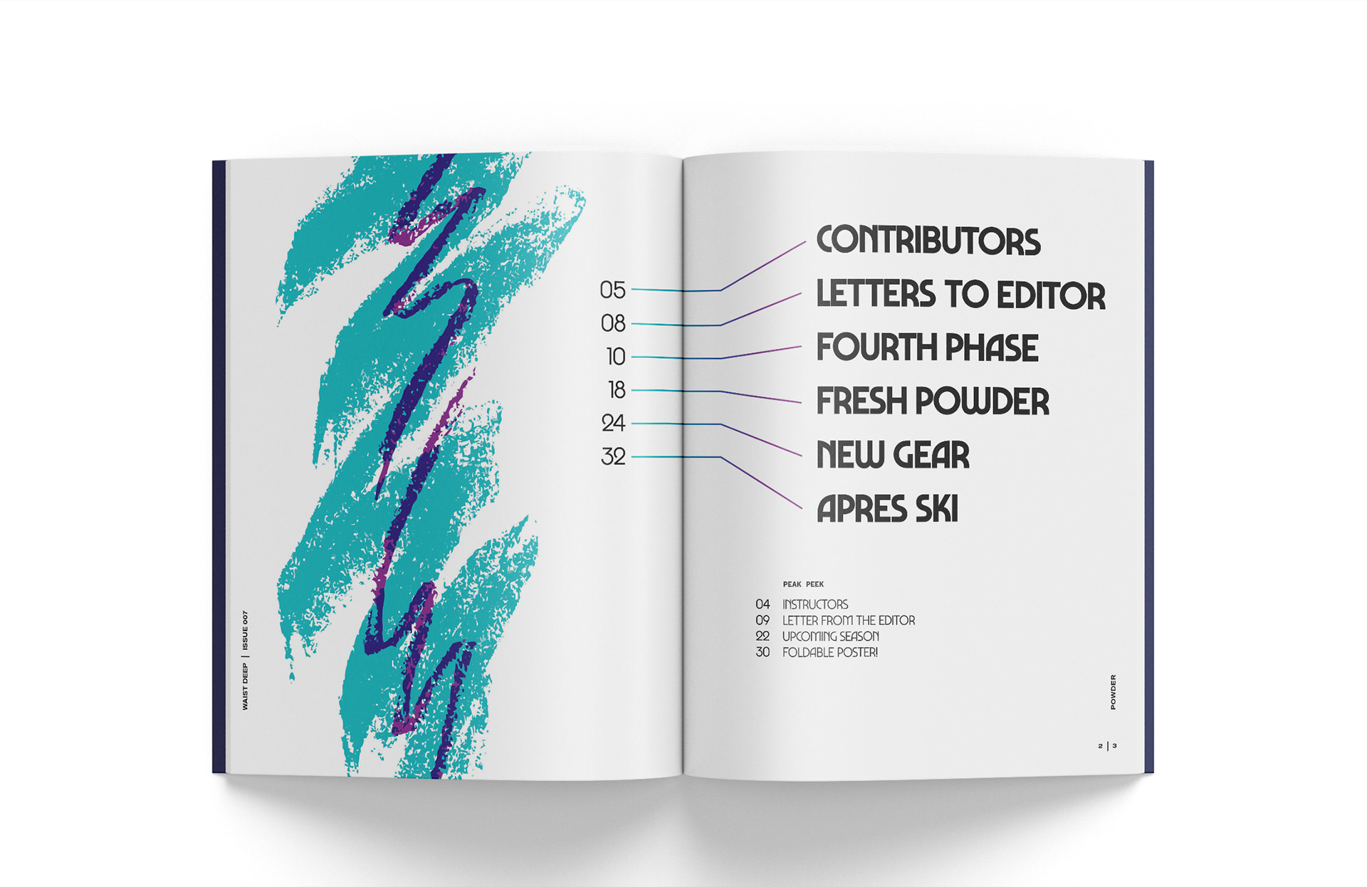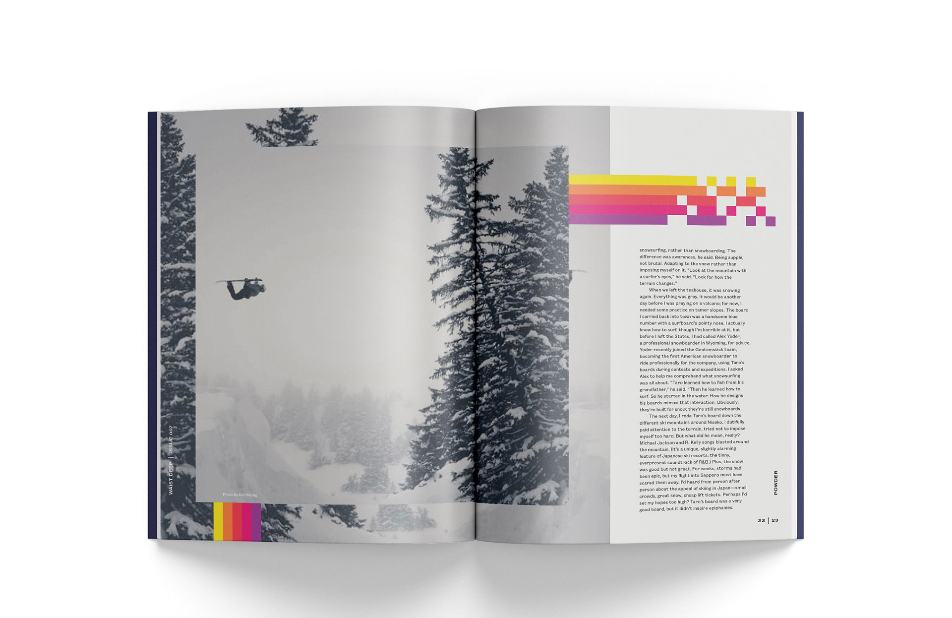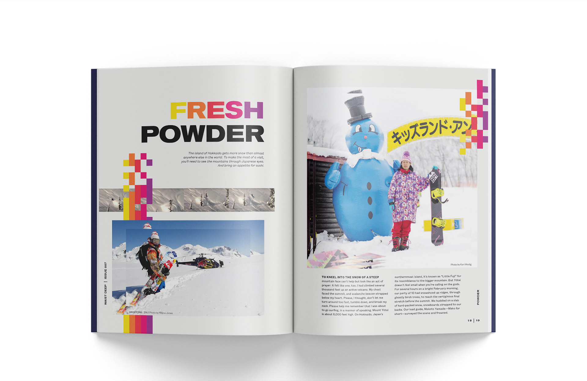 Early 90's inspired Magazine design created to highlight snowboarding and winter sports, both riders and locations. Complete with interviews, featured articles, and an alternate issue cover.